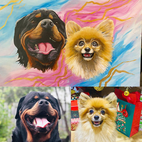 I specialize in creating unique, hand-painted acrylic pet portraits that truly capture the essence of your furry friend. All I need is your favorite photo of your pet, and I will carefully paint a personalized portrait that brings out their personality, charm, and spirit with any background you request.